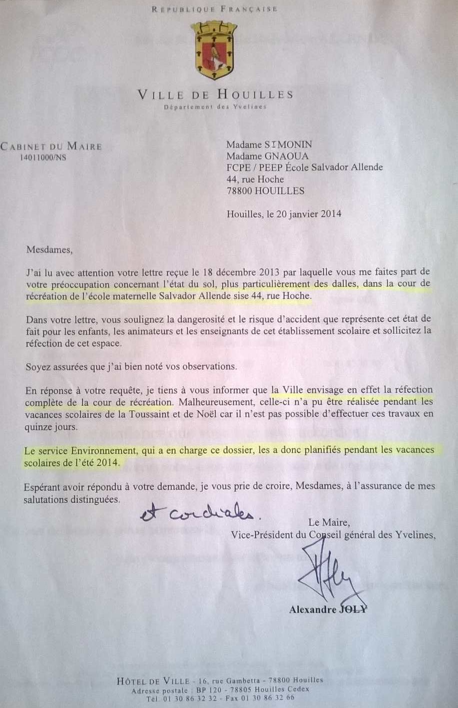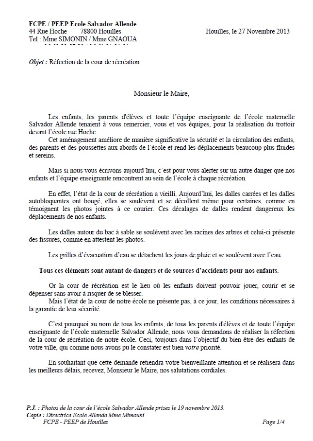 En novembre 2013, les représentants de parents d’élèves de l’école Allende ont fait un courrier à la mairie pour demander la réfection de la cour, photos à l’appui :