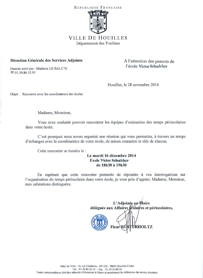 Ecole Schoelcher : La réunion périscolaire aura lieu le 16 décembre 2014 fcpe houilles / 1 décembre 2014 Cette réunion est ouverte à l’ensemble des parents. N’hésitez pas à venir rencontrer l’équipe d’animation des temps périscolaires de votre école ! Pour plus d’information, consultez le courrier de la mairie ci-dessous : Partager : Partager sur Facebook(ouvre dans une nouvelle fenêtre) Facebook Partager sur X(ouvre dans une nouvelle fenêtre) X Plus Imprimer(ouvre dans une nouvelle fenêtre) Imprimer Email a link to a friend(ouvre dans une nouvelle fenêtre) E-mail J’aime chargement…