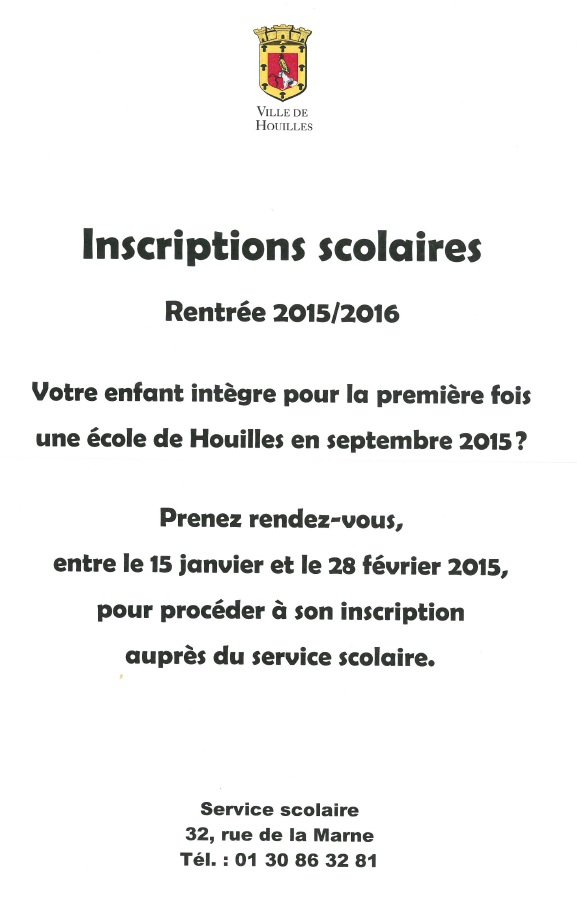 Pour cela, vous devez prendre un rendez-vous, auprès des services scolaires de la ville, entre le 15 janvier et le 28 février 2015, au 01 30 86 32 81 ou en vous déplaçant au 32 rue de la Marne.