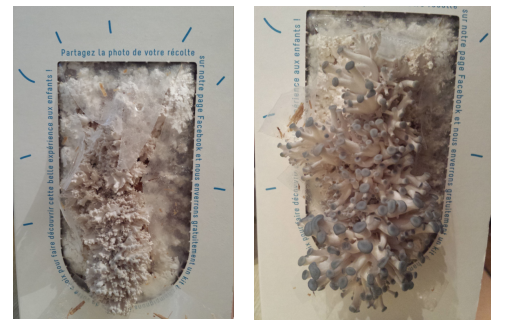 Le concept est simple, on achète une boite en carton qui contient le substrat pour faire pousser les champignons. Il suffit alors d’humidifier quotidiennement le substrat, d’attendre patiemment 15 jours et enfin de récolter. La dégustation peut alors commencer !