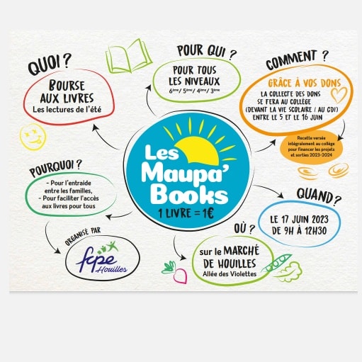 Afin de faciliter l’accès aux livres à lire pendant l’été, de créer du lien et de l’entraide entre les familles, la FCPE Maupassant organise les Maupa’ Books :