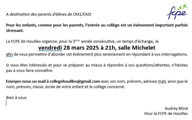Stressé(e)s par le rentrée au collège de vos enfants ? Venez discuter avec les parents FCPE le 28 mars à 21h Salle Michelet !