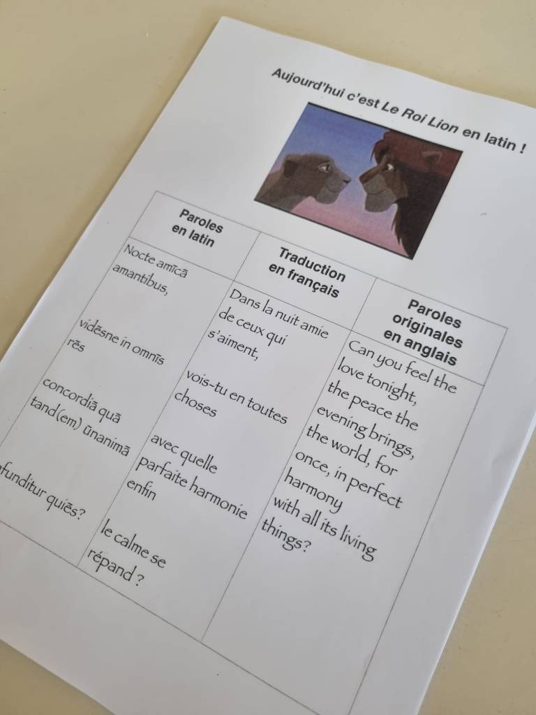 – une professeur passionnée qui nous fait chanter l’Amour brille sous les étoiles en latin