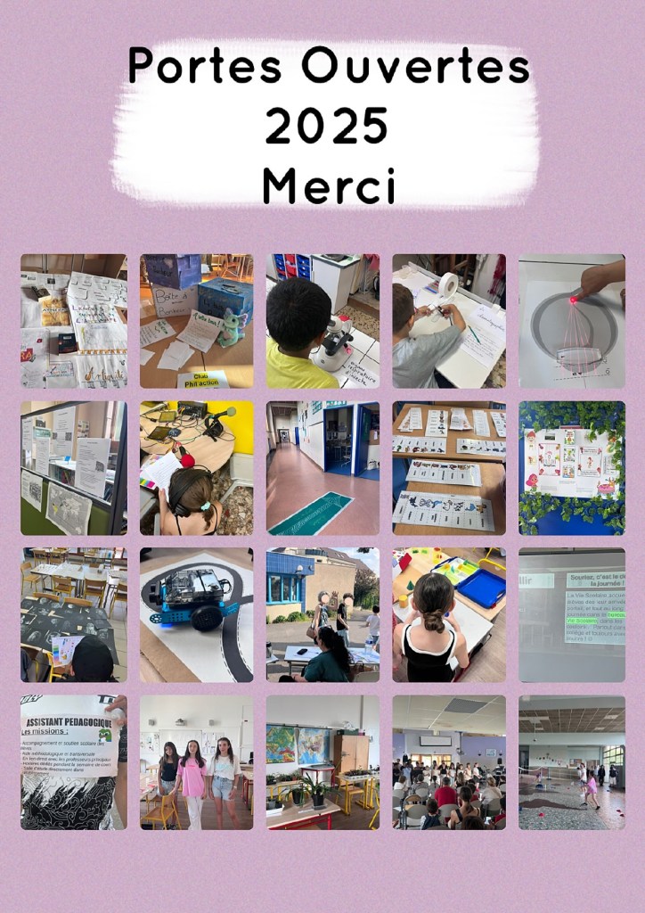 Merci énormément à Mme la Principale pour les photos et à l’ensemble du collège pour leur fabuleux accueil et l’organisation de cet évènement essentiel pour préparer les enfants à leur nouvel environnement !