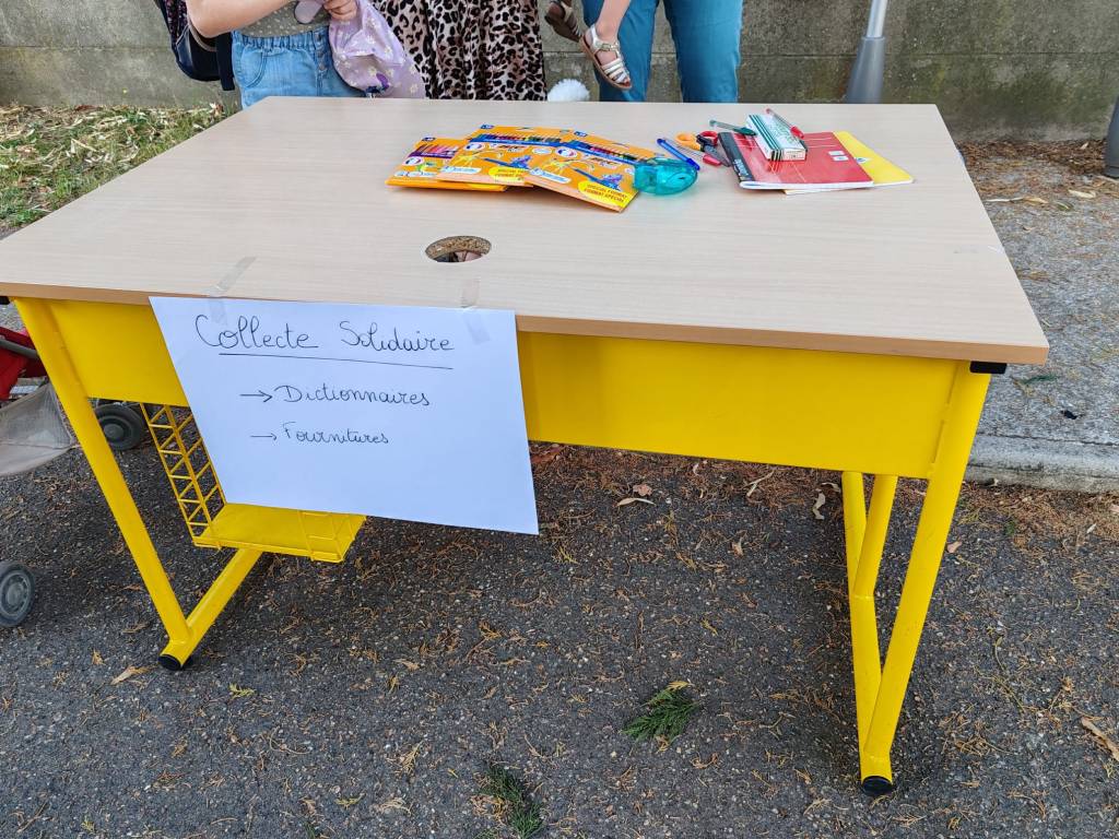 Les APE de l’école, dont la FCPE, récupèrent les dons de dictionnaires scolaires que les enfants n’utilisent plus, et collectent des fournitures scolaires neuves ou peu utilisées.