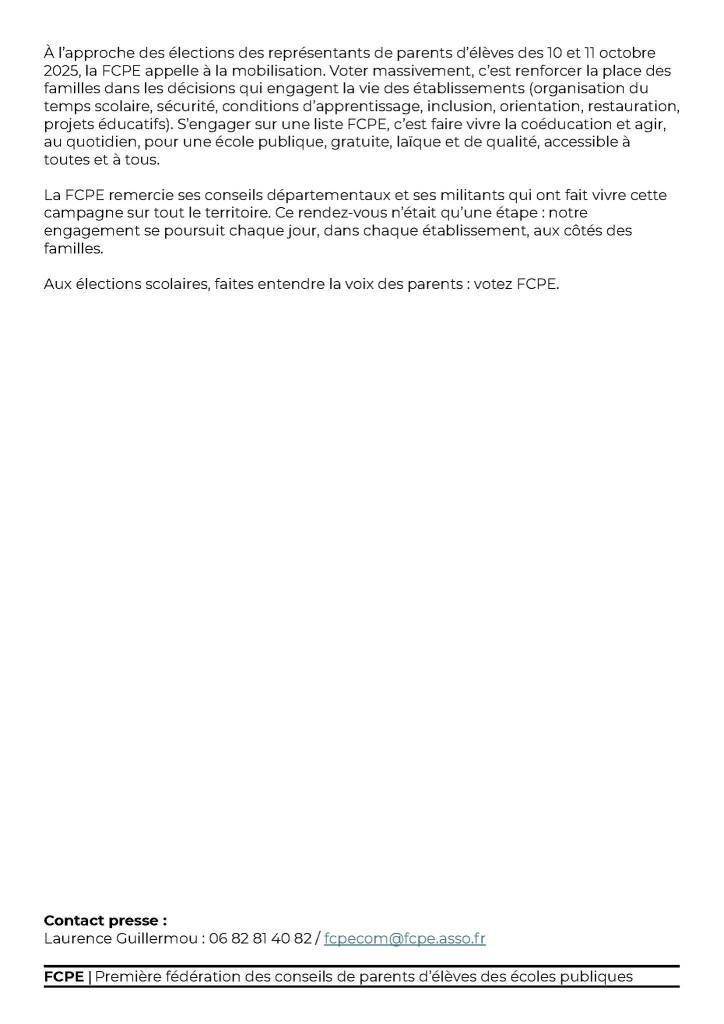 Pour une école où l’on s’engage pour nos enfants, votez FCPE du 6 au 10 octobre afin que nous ayons des élus partout pour vous représenter !