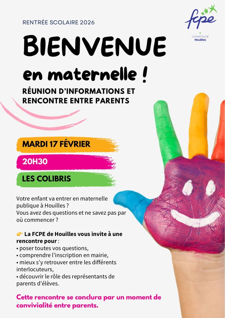 Pour la deuxième fois, la FCPE de Houilles organise une réunion d’information pour les parents dont les enfants rentreront à la maternelle à la prochaine rentrée de septembre 2026.