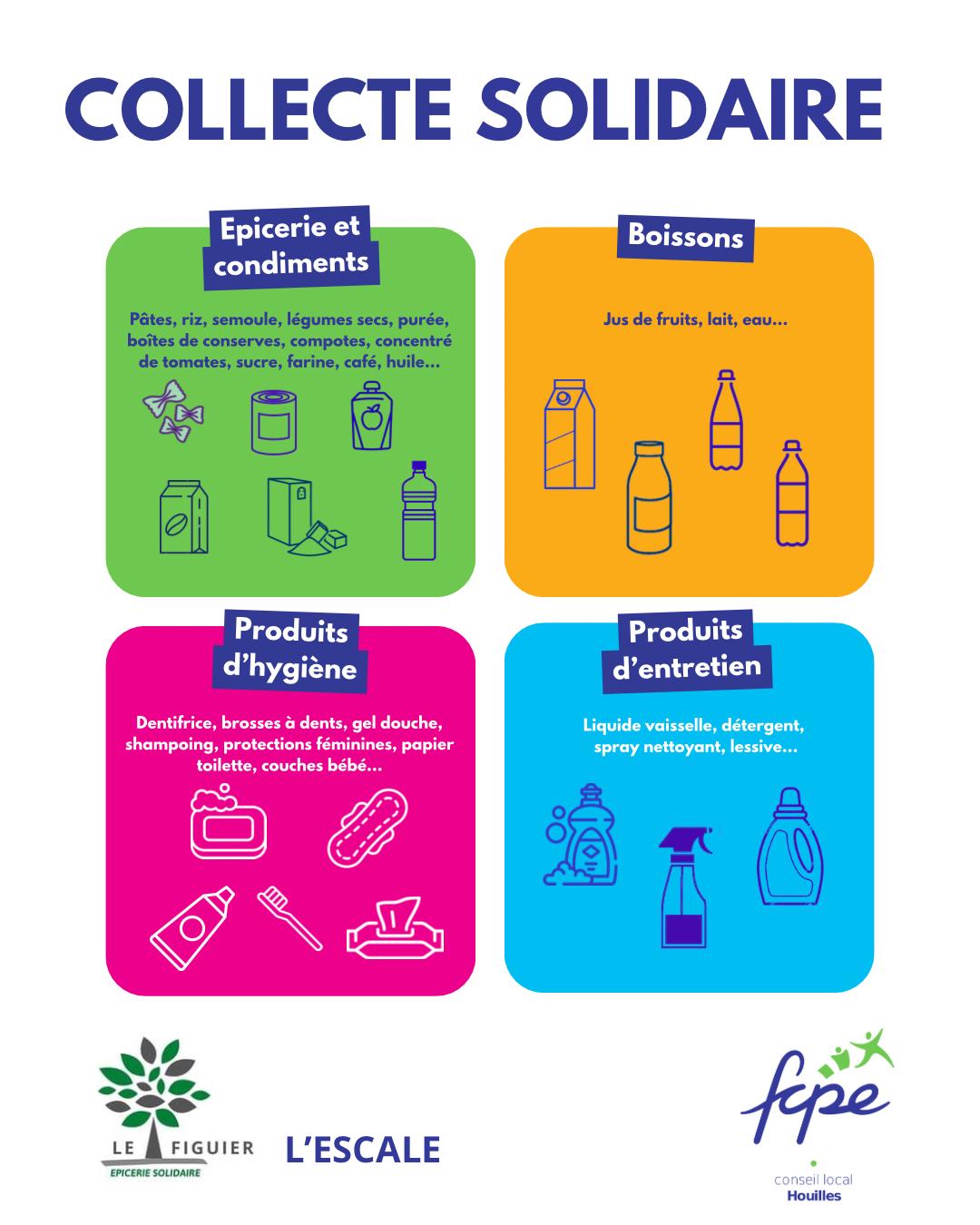 Cette année, la FCPE de Houilles a proposé aux écoles d’organiser des collectes au profit des 2 épiceries solidaires de la ville : le Figuier qui se situe rue Stalingrad et l’Escale qui se trouve sur le haut de la place Michelet.
