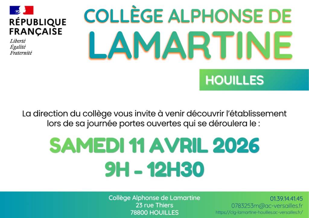 Portes ouvertes au collège Lamartine le 11 avril 2026 fcpe houilles / Il y a 3 heures 3 avril 2026 Partager : Partager sur Facebook(ouvre dans une nouvelle fenêtre) Facebook Partager sur X(ouvre dans une nouvelle fenêtre) X Plus Imprimer(ouvre dans une nouvelle fenêtre) Imprimer Envoyer un lien par e-mail à un ami(ouvre dans une nouvelle fenêtre) E-mail J’aime chargement…